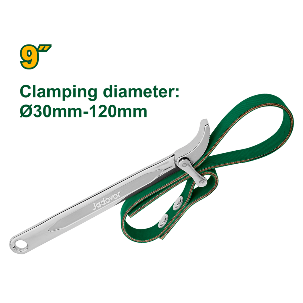 Llave de correa Tamaño 9” Diámetro de sujeción 30 mm a 120 mm – largo del cinturón 500 mm – cinturones de caucho y nylon
