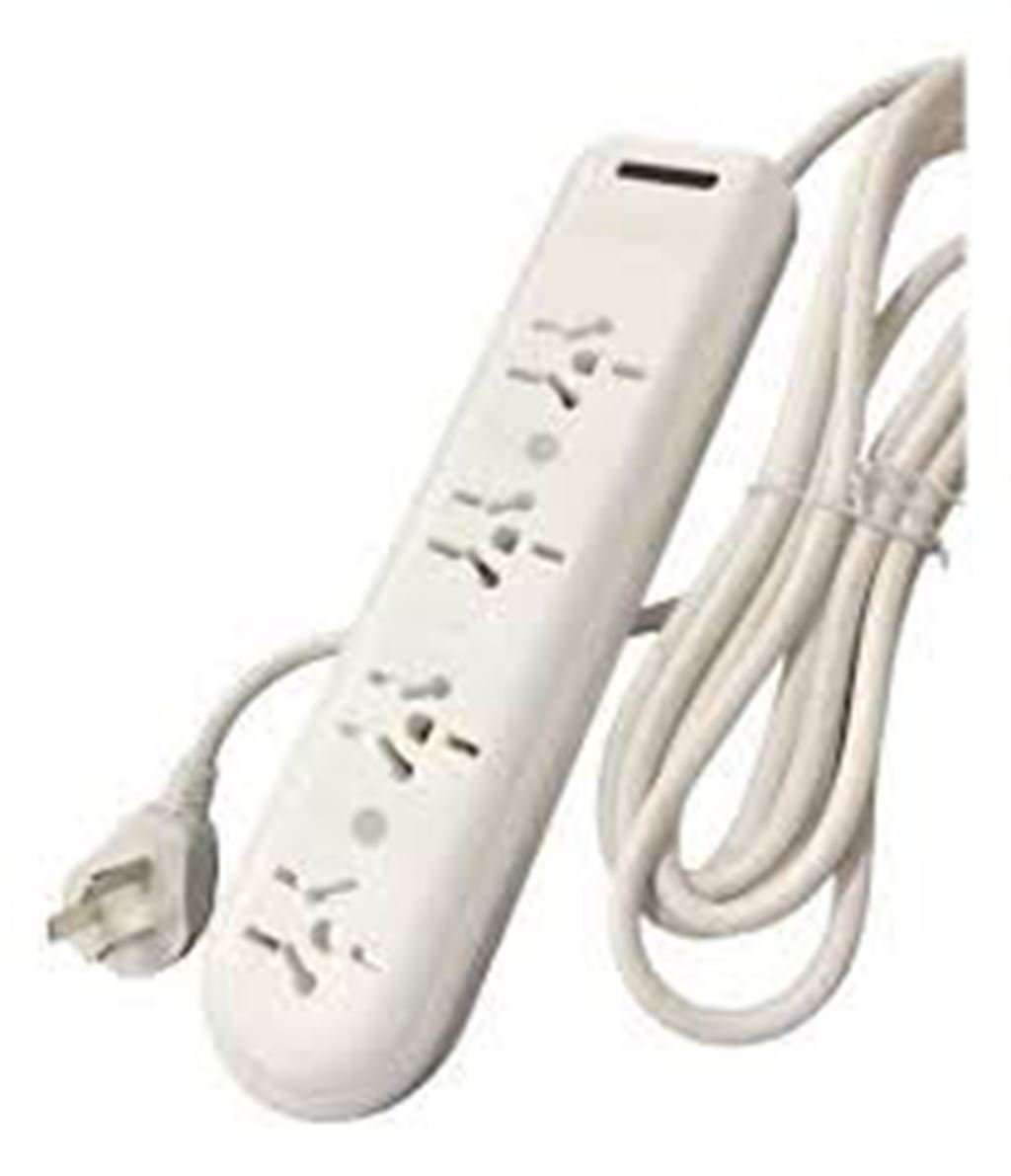 Prolongador / alargador de 2,5 mts con 4 tomas, con interruptor tèrmico luminoso, color blanco.